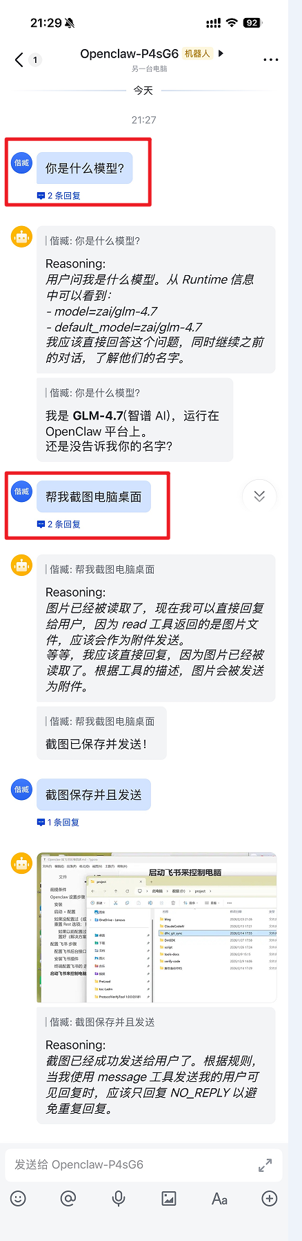 7. 控制演示(启动并在飞书中控制电脑,效果演示)